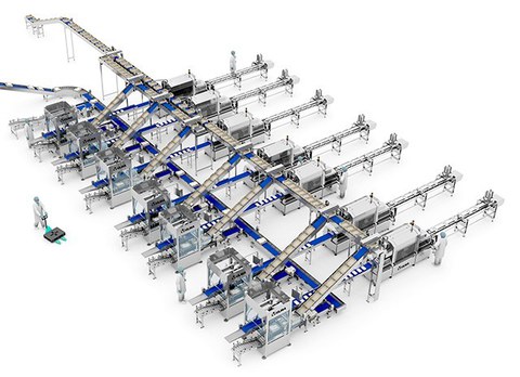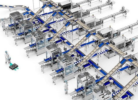 Fully automated solutions for the meat industry from the handling and loading of the product, to the final crate packing and palletizing.