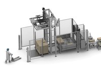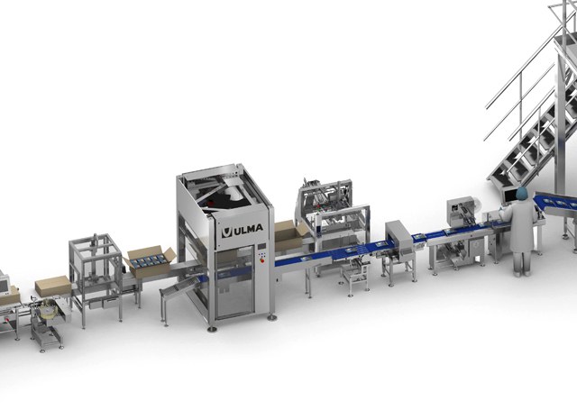 The robotic case packing cell is made up of an automatic carton case erector, a case packer robot and an automatic box closer.