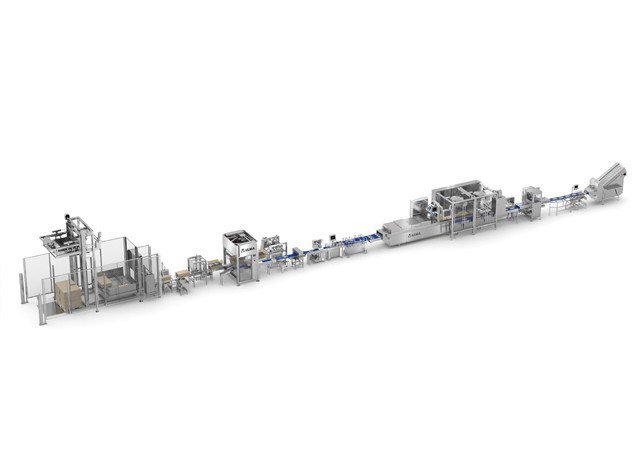 Complete line of fully automated packaging for sliced cheese.