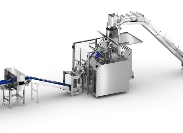 A metal detector performs the inspection of each bag just after bagging in order to reject packages that contain some trace of metal.
