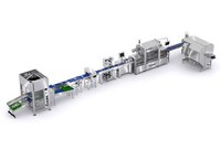 Complete line of packaging for fully automated meat fillets in trays.