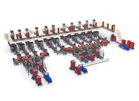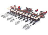 The complete automation solution for the packaging plant includes eleven packaging lines for different meat products. Each line consists of a TSA traysealer and a robotic case packing cell. The palletizing area consists of three palletizing cells palletize all the incoming references from the eleven production lines.