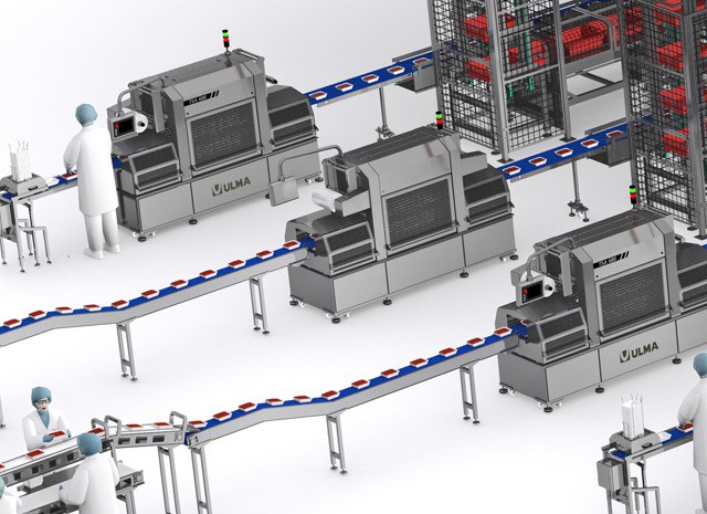 The ULMA TSA traysealers are high-performance traysealers with a sanitizable design. They are responsible for sealing the product trays to make packages with a modified atmosphere to extend the shelf life of the product.