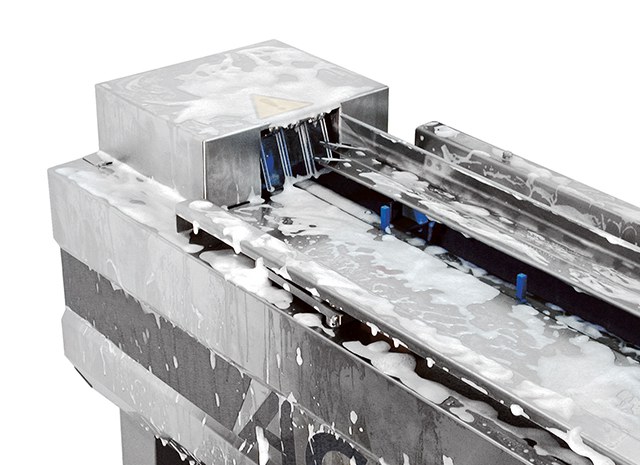 Machine is built on a stainless stel frame in a cantilever execution, to avoid dirt and dust accumulation and allowing an optimum cleaning and hygiene.