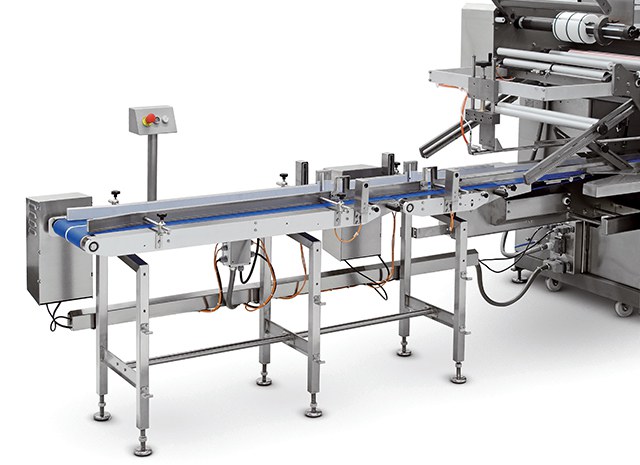 In-feed conveyor 2 meters long fully made in stainless steel and designed for easy cleaning.