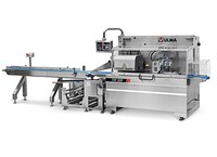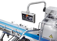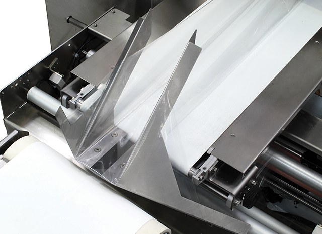 - Fully flexible folding box to adapt the film The machine stores the product height, so that it is recalled with every product changeover. The machine then automatically sets the sealing roller height and the cross sealing jaws centre to the stored position.