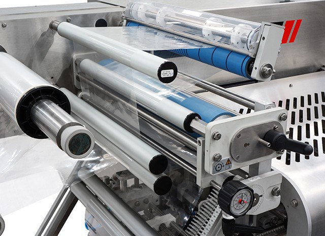 - 3 pairs of rollers for longitudinal film pulling and sealing.