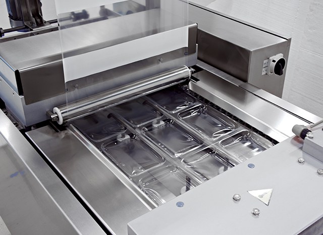 The TFS 80 Is a thermoforming machine designed to pack food, non-food or medical products. The package is created directly by the machine using two rolls of film.
