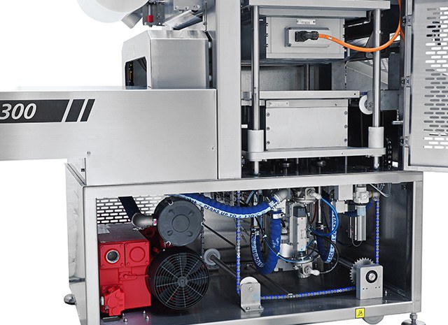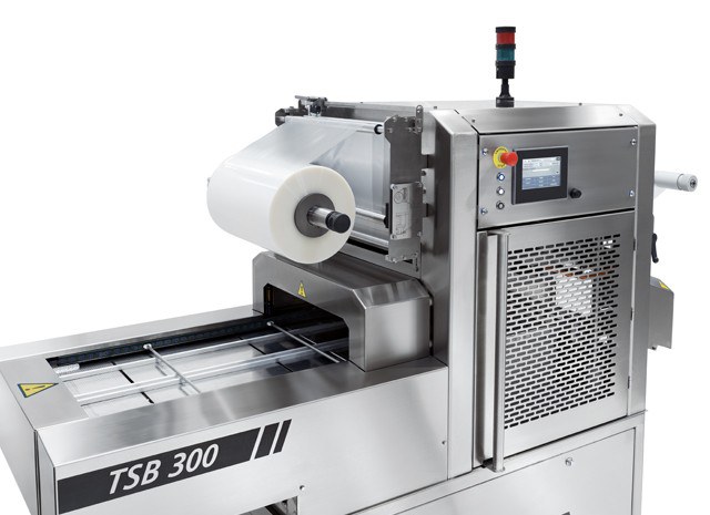 The compact tray sealing machine TSB 300 is designed to pack food products in pre-formed trays. The trays are sealed with tray compatible, heat sealable lid film.