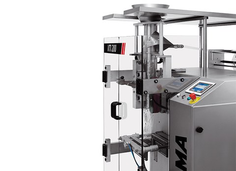 Vertical automatic bagging machines using a single film coil to obtain a package with three weldings : two cross-weldings and one longitudinal welding. Its main field of application includes loose products, granulated products, doughy products or products difficult to handle. This type of machine is aimed at both food and non food markets.