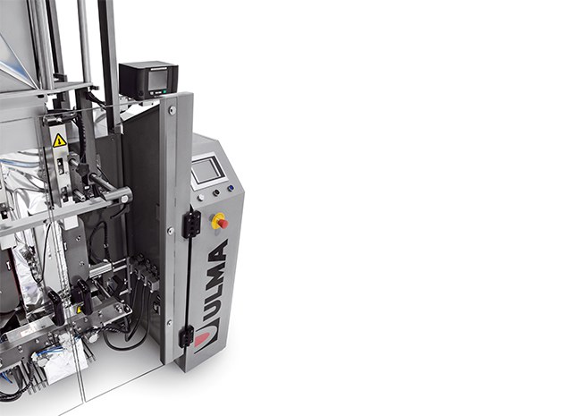 Vertical packaging machine (VFFS) which makes a three sealing pack. Medium-high production speed performance up to 100 cycles/min.